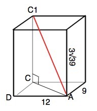 В прямоугольном параллелепипеде ABCDA1B1C1D1 известно, что AD=12, CC1=3√39, AB=9 (см. рис.). Найдите длину диагонали AC1.