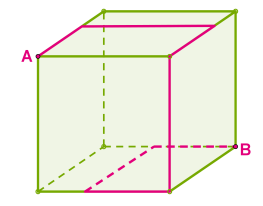 Муха ползает по поверхности куба вдоль красной линии от точки A к точке B.