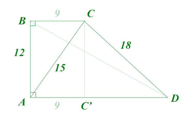Трапеция ABCD – прямоугольная . Ее боковые стороны равны 12 см и 18 см, а диагональ АС равна 15 см. Найдите основания трапеции.