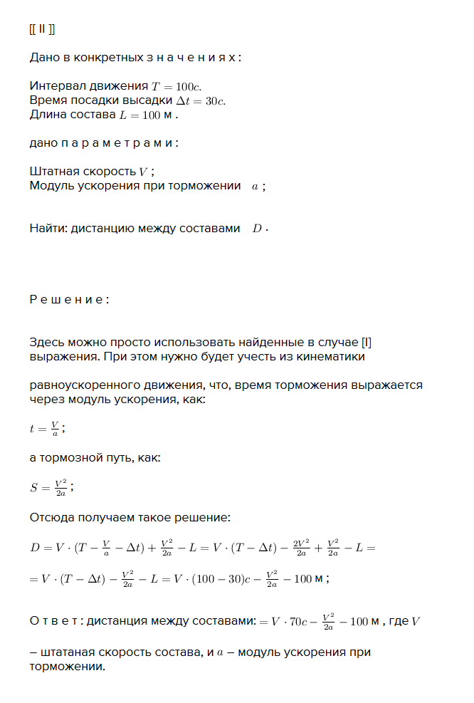 [[ II ]] Если же предположить, что поезда останавливаются с постоянным ускорением