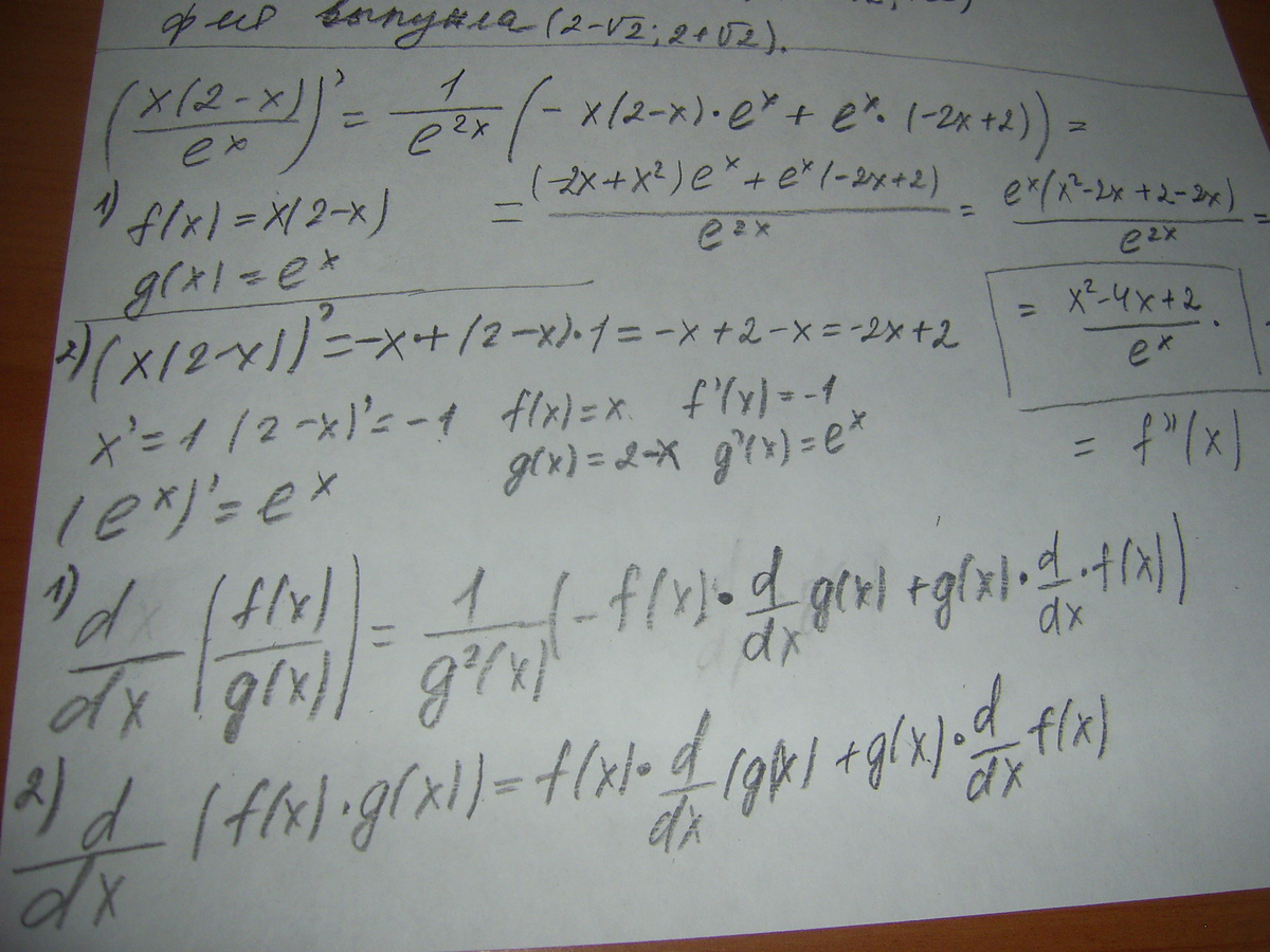 -x^2*e^-x+2*x*e^-x=(x(2-x))/e^x или x(2-x)*e^-x