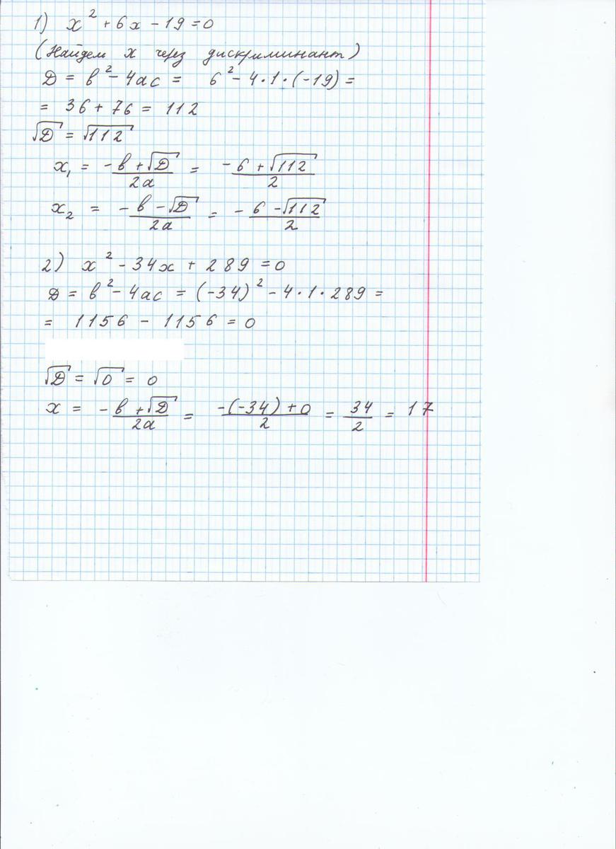 2) x^2-34x+289=0