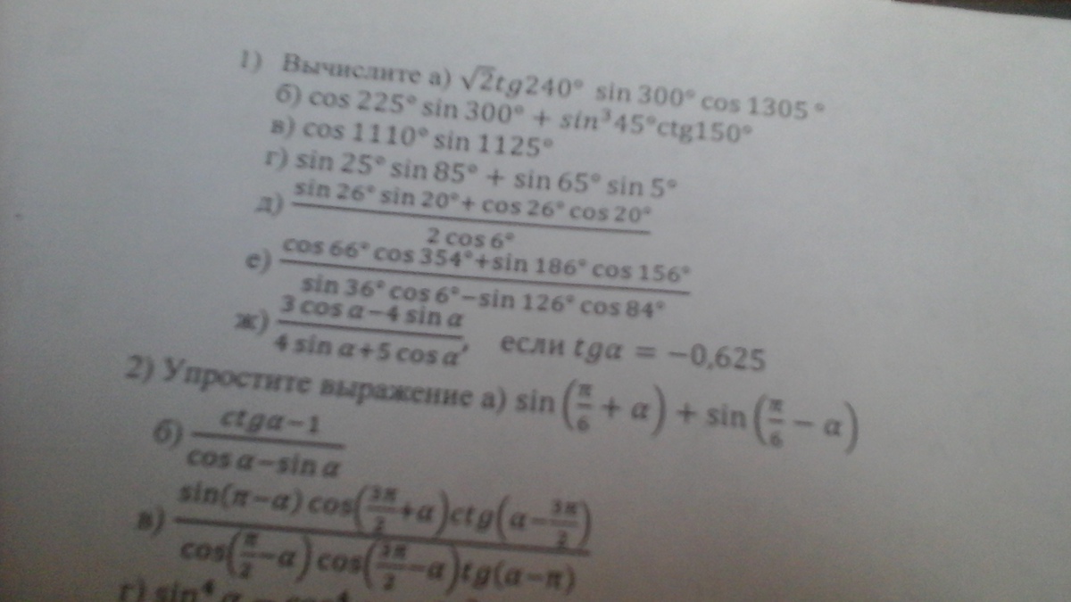 Д) формула разности углов косинуса получаем: cos6/2cos6=1/2 или 0,5