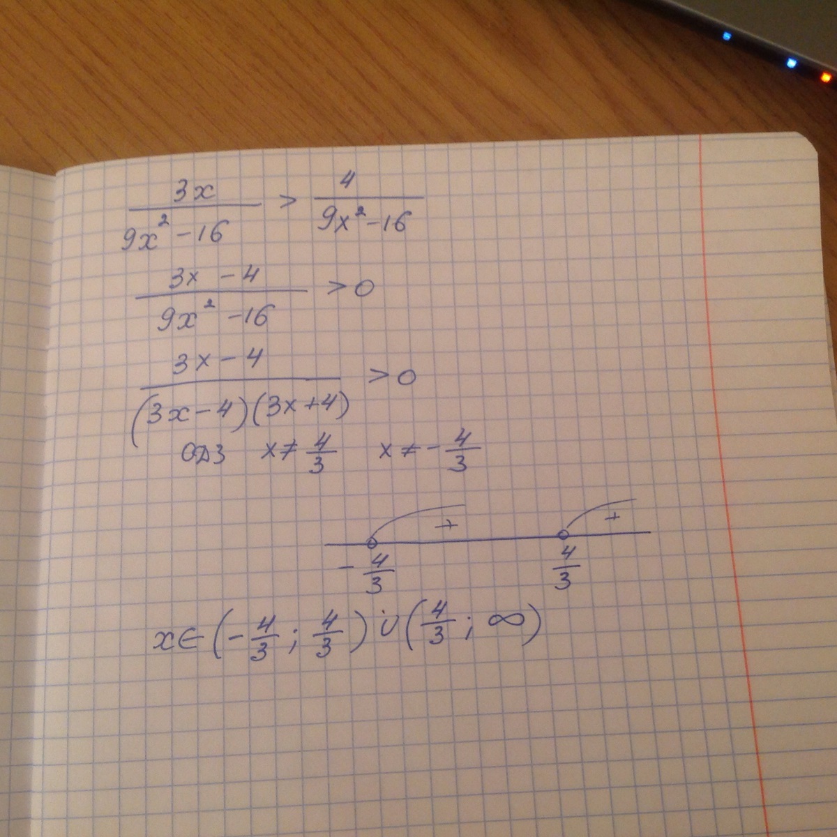 3x/(3x-4)(3x+4)-4/(3x-4)(3x+4)>0