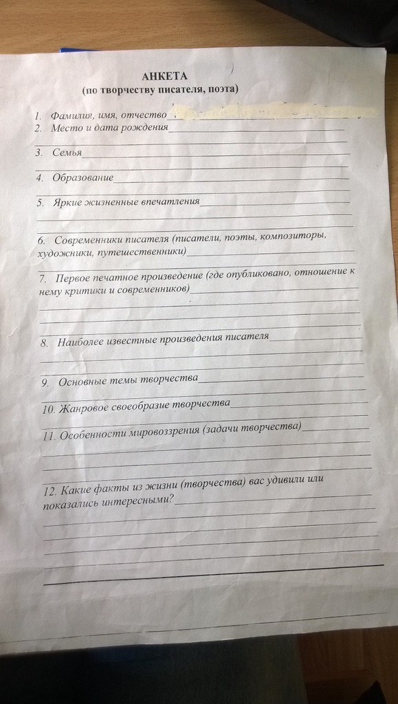Анкета по Достоевский Федор Михайлович(смотрите фото)
