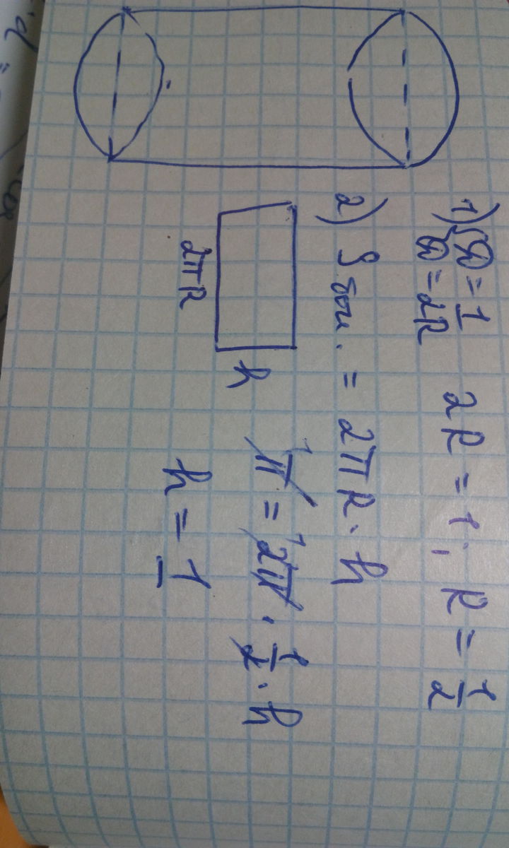 , а диаметр основания равен 1. Найдите высоту цилиндра. (площадь боковой поверхности цилиндра равна произведению периметра основания на высоту)