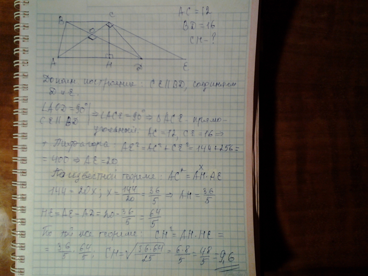 Применена теорема о пропорциональных отрезках в прямоугольном треугольнике