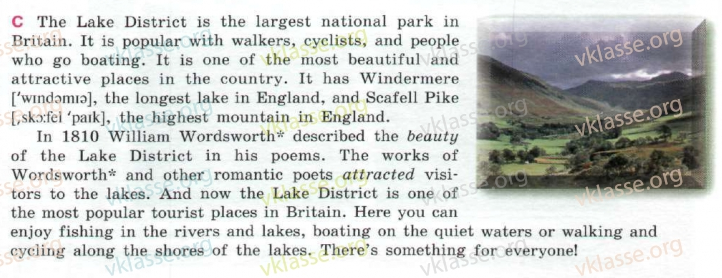В 1810 году Вильям Вордсворт ( это псевдоним? если да, то фамилию можно перевечти как "ценитель слов" ну или что-то в этом духе) описал красоту Озера дистрикт в своих стихотворениях. Работы Ворсворта и других романтистов привлекли посетителей к озерам. И сейчас Озеро Дистрикт это одна из самых популярных туристических мест в Британии. Здесь вы можете наслаждаться рыбалкой в реках и озерах, катании на лодках по тихим водам или ходьбой и катанием на велосипедах по берегам озера. Здесь найдется что-то для каждого!