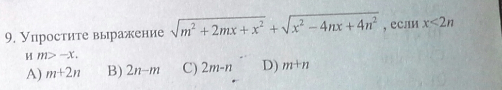 Т.к m>-x, то верно неравенство m+x>0. Из этого следует, что