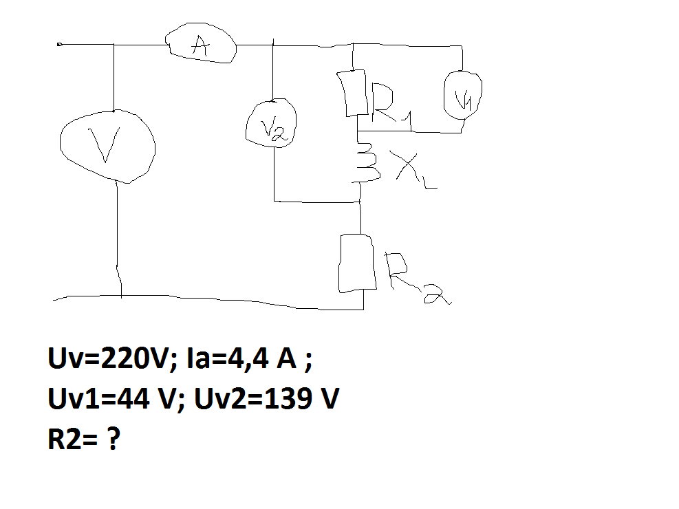 Падение напряжения на резисторе R₂ равно V - V₂ = 220 - 139 = 81 В.
