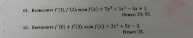 62. Вычислить f'(1), f'(2), если f(x) = 7x³ + 3x² - 3x + 1