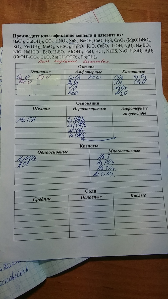 а, и ещё, я гидроксид цинка записала в оксиды, а он-амфотерное основание
