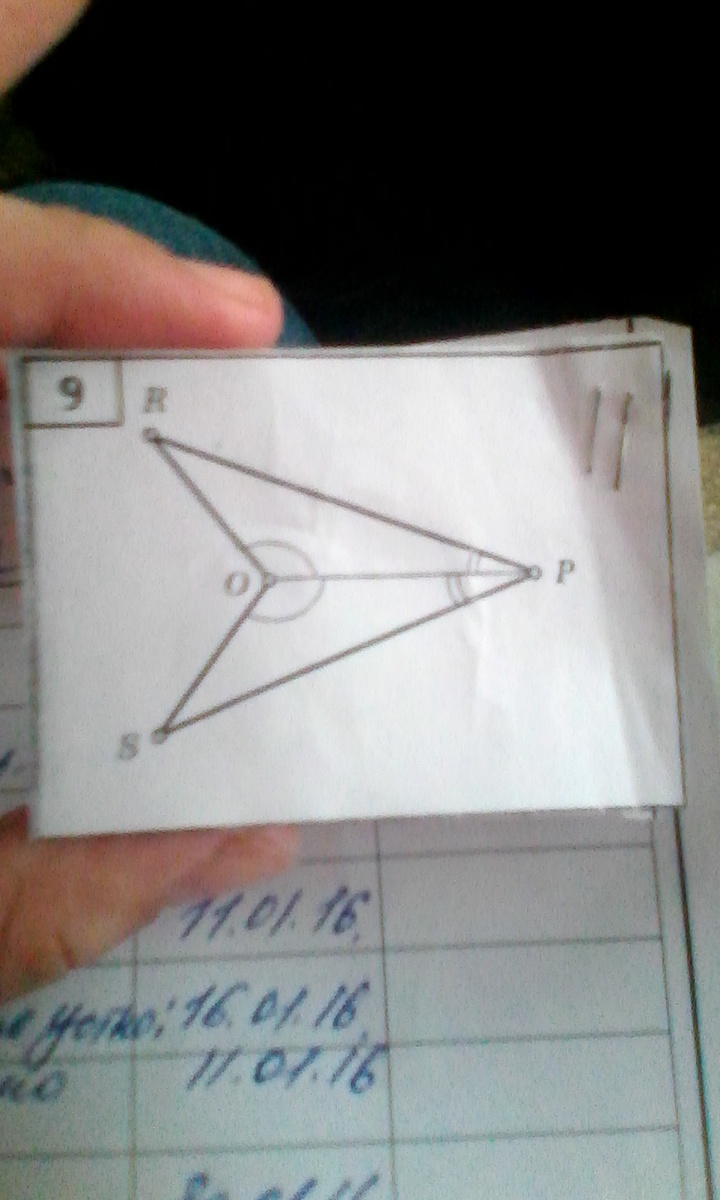 так как углы ROP и SOP равны по условию, а сторона OP- общая, треугольники равны по третьему признаку равенства треугольников. (извини за повтор слов, но так положено доказывать)