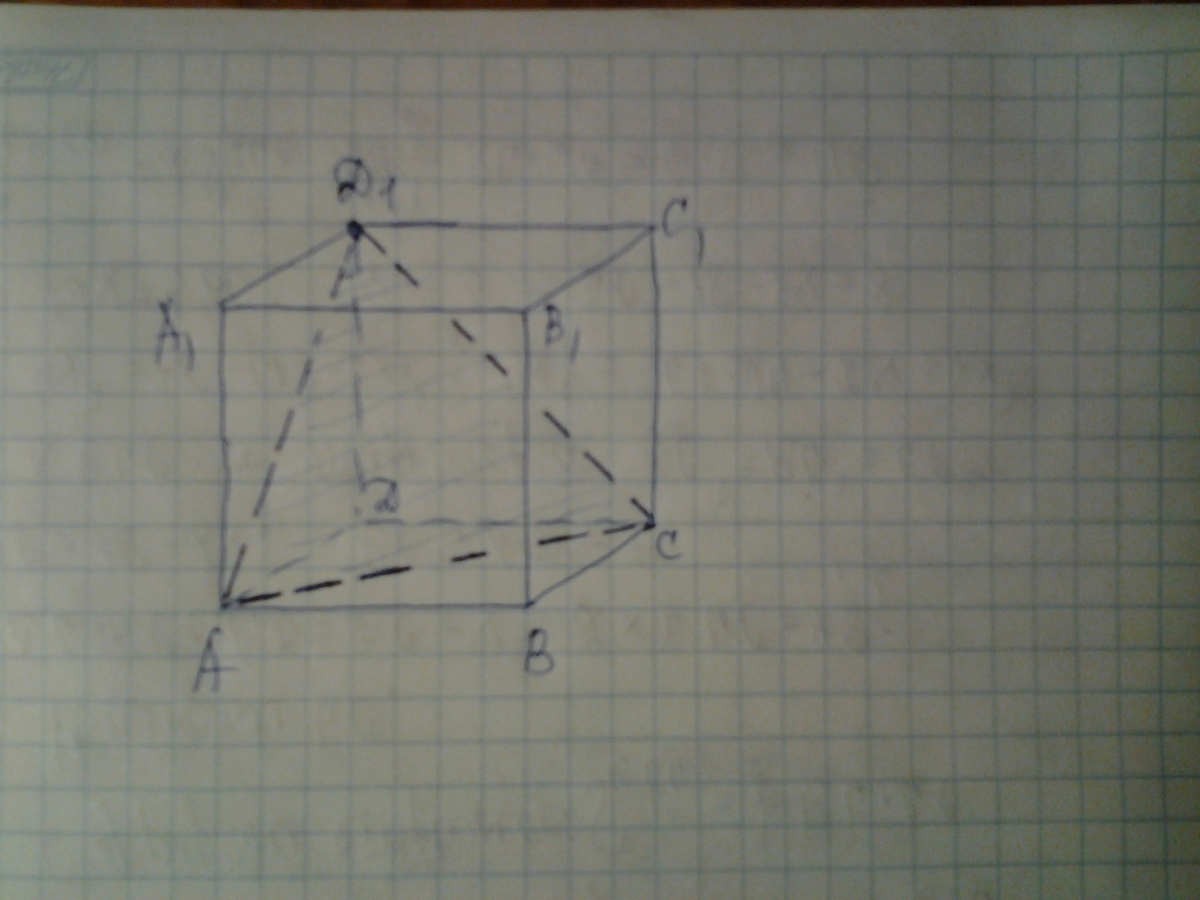 Побудувати переріз куба ABCDA1В1С1D1 площиною, яка проходить через вершину D1 і діагональ АС нижньої основи.