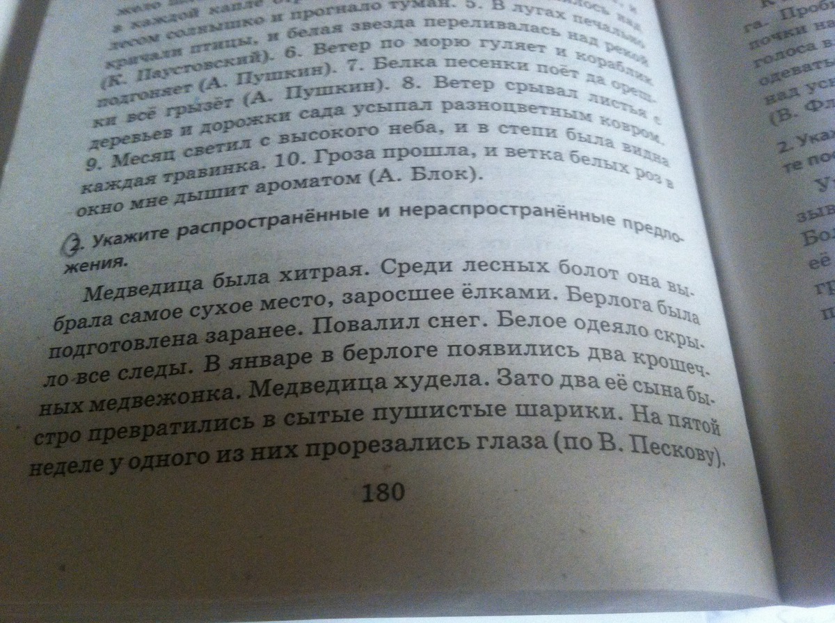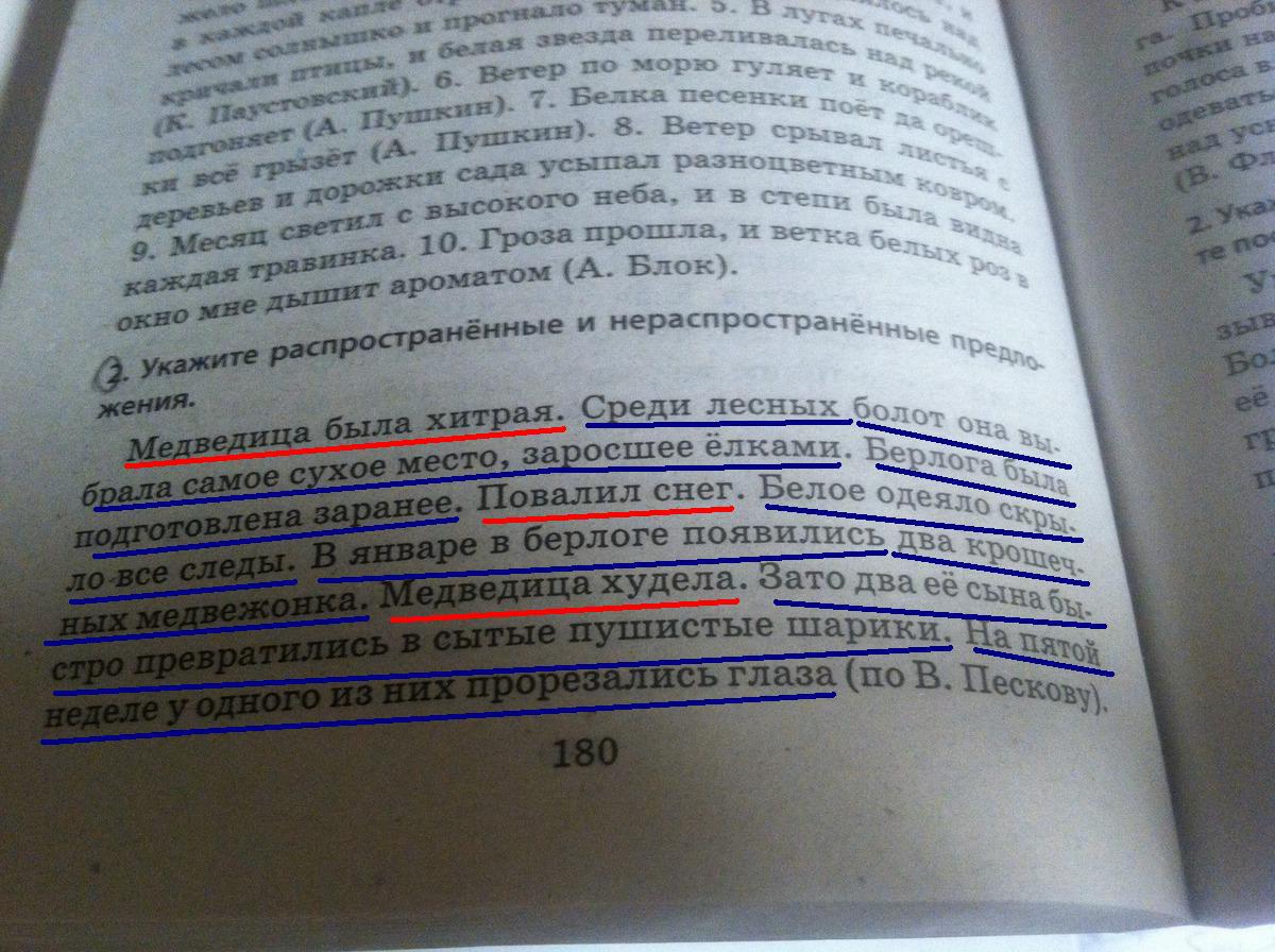 Нераспространенные: Медведица была хитрая. Повалил снег. Медведица худела.