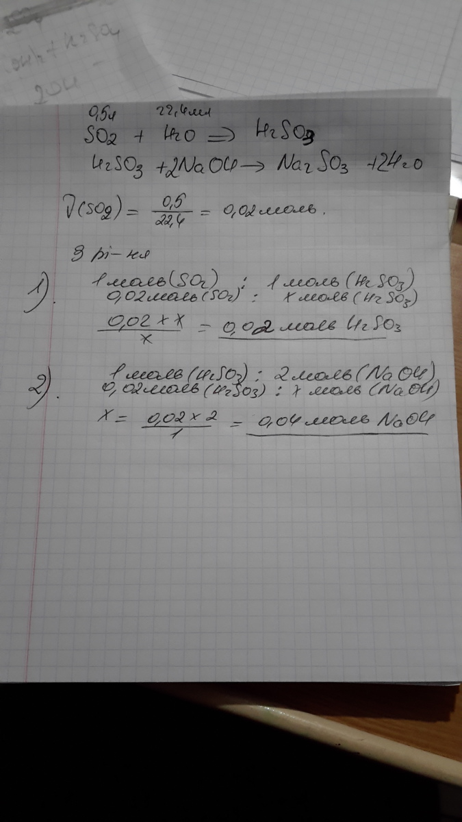 В 0,5 л воды растворили 22,4 мл оксида серы (IV). Сколько моль гидроксида натрия нужно для нейтрализации этого раствора?