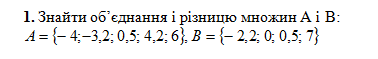 Чтобы записать объединение множеств, надо первое выписать целиком, а из второго недостающие элементы