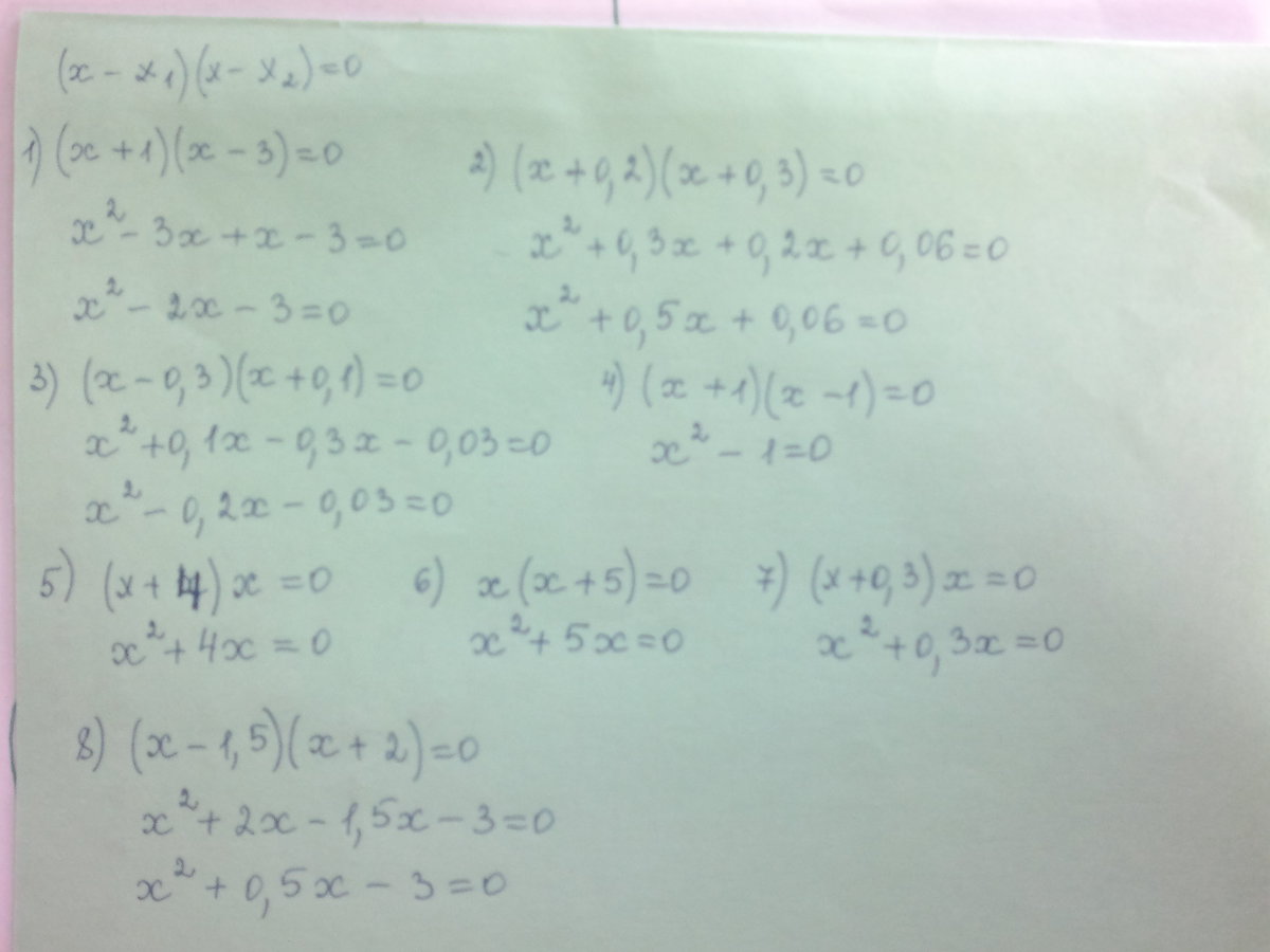 Составьте квадратное уравнение по его корням: