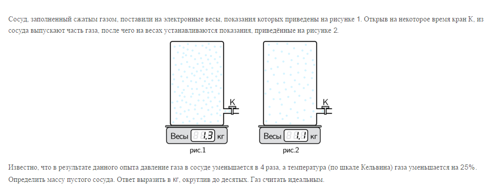 m+m1=1,3 кг, m+m1-Δm=1,1 кг, р2=р1/4, T2=0,75T1.