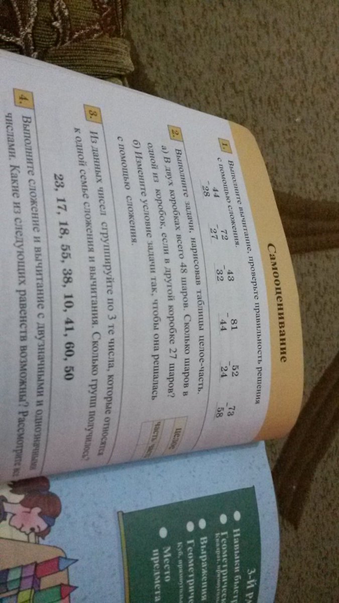 Номер 3 помогите пожалуйста Из данных чисел сгруппируйте по 3 те числа ,которые относятся к одной семье из сложения и вычитания .Сколько групп получилось?