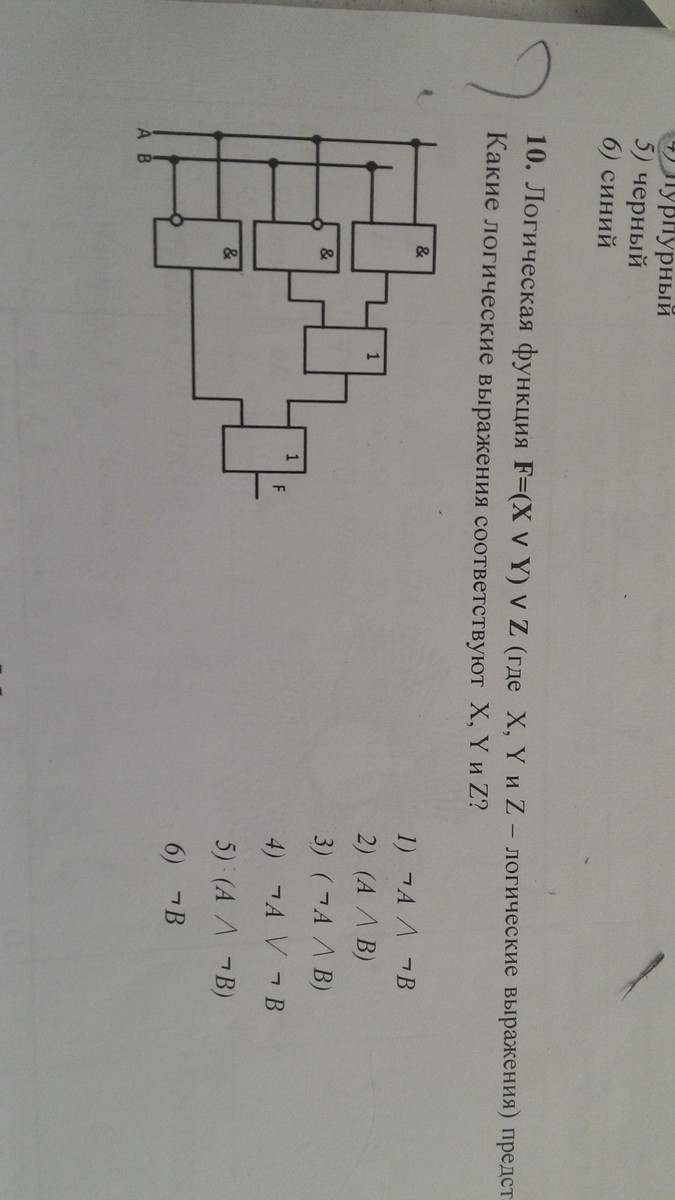 Логическая функция F=(X∨Y)∨Z (где X, Y, Z - логические выражения) представлена в виде схемы. Какие логические выражения соответствуют X, Y, Z? (Схема и варианты ответов на картинке. Желательно с объяснением)