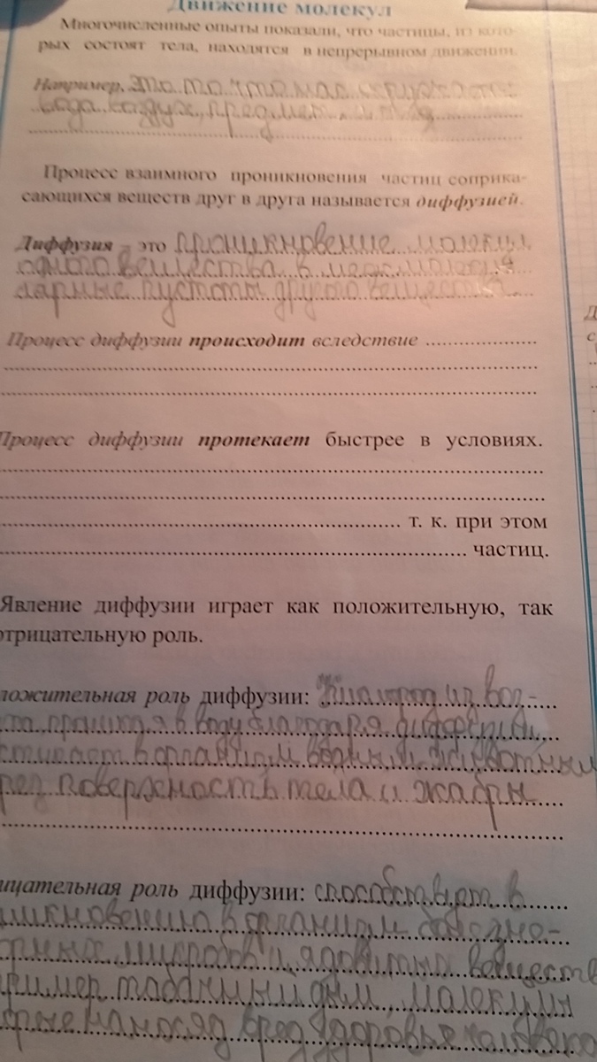 Диффузия происходит вследствие теплового движения атомов, молекул