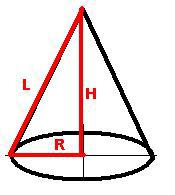 S = pi*R*L - где L - образующая конуса - вычисляем по т. Пифагора