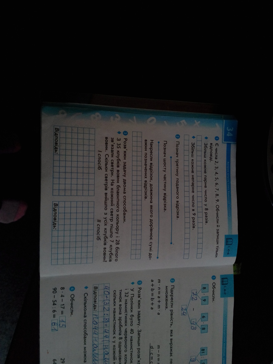 2.Нужно померять линейкой и первый отрезок поделить поравну на три части одну из которых закрасить, а второй поделить на шесть частей и закрасить одну из них!!!А потом нужно сложить то, что закрашенно вместе и начертить отрезок