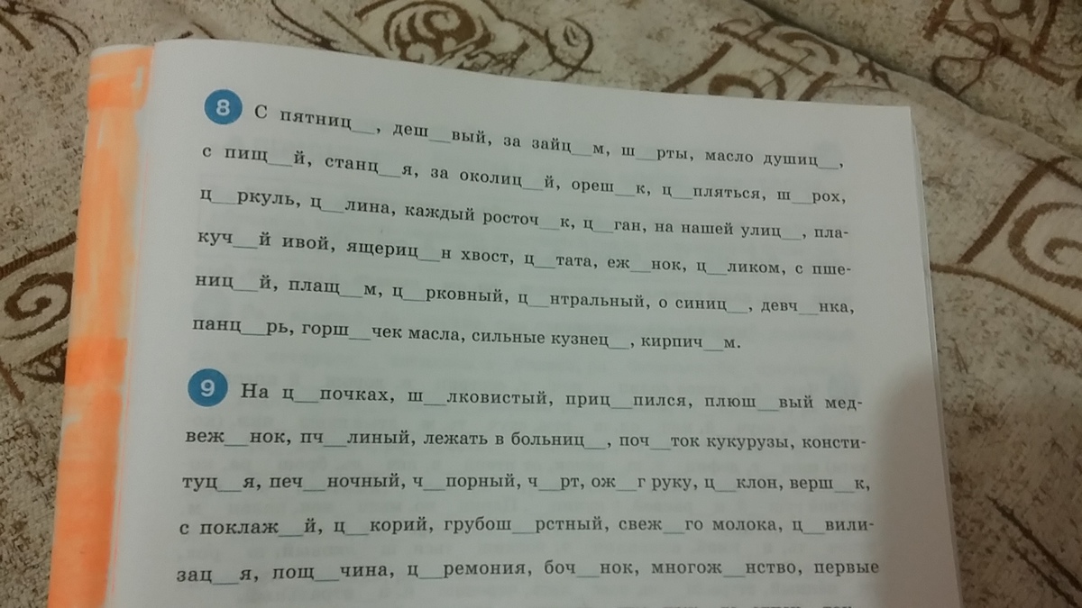 На цыпочках, шелковистый, прицепился, плюшевый медвежонок, пчелиный, в больнице, початок, конституция, печёночный, чопорный, чёрт, ожёг руку, циклон, вершок,с поклажей, цикорий, грубошёрстный, свежего, цивилизация, пощечина, церемония, бочонок,многожёнство.