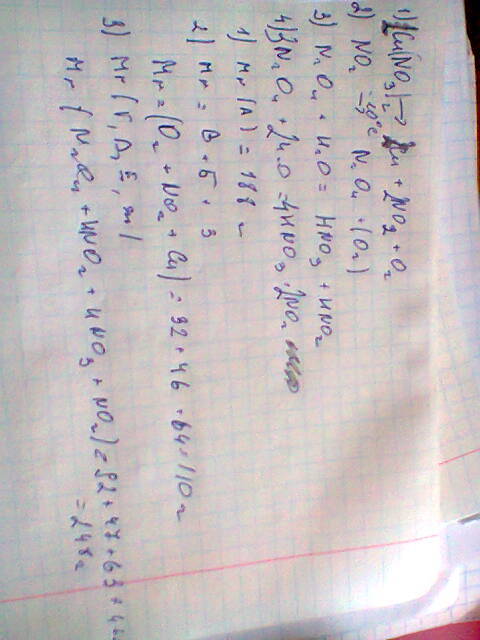 При термическом разложении 18.75г вещества А выделилась смесь бурого и бесцветного газов Б и В и твердый остаток З массой 7.95г. При охлаждении смеси газов Б и В ниже -10оС получены бесцветная жидкость Г и газ В. При добавлении небольшого количества воды жидкость Г превратилась в смесь жидкого вещества Д синего цвета и раствора бесцветного вещества Е. При взаимодействии полученной смеси с избытком воды получен раствор вещества Е и газообразное вещество Ж.