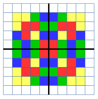 Представьте, что вы художник-реставратор.. Вам необходимо восстановить мозаичное панно, из которого выпали отдельные кусочки. Известно, что узор изображённый на панно, имеет две взаимно перпендикулярные оси симметрии. Скопируйте рисунок и восстановите узор.