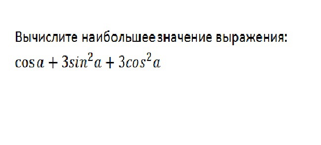Вычислите наибольшее значение выражения: cos a+3sin^2 a+3cos^2 a