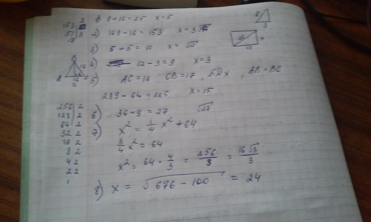 1)х=5 (9+16=25) в скобках решение по теореме сразу в квадрате
