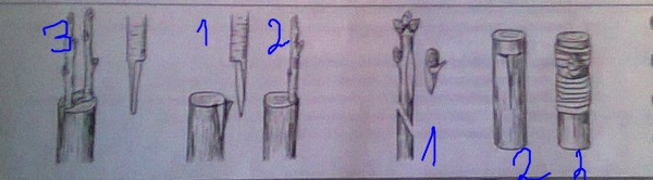Сначала рассмотрим три рисунка слева(процесс прививки побега)