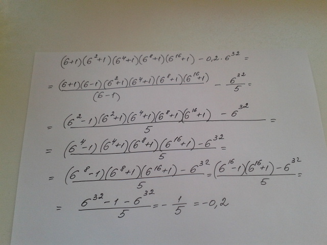 (6^4-1)(6^4+1)(6^8+1)(6^16+1)/5-0.2*6^32=