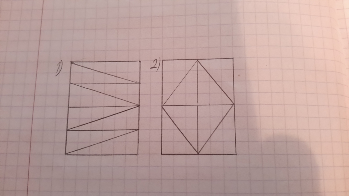начертить прямоугольник со сторонами 3 см и 4 см . Разделить прямоугольник на 8 равных треугольников