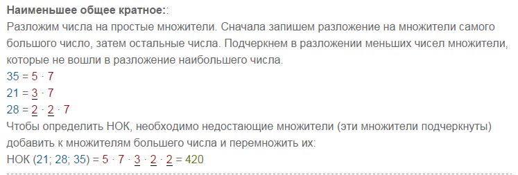 НОК 21, 28, 35=3 x 7 x 2 x 2 x 5 =420