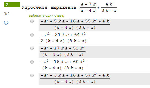 a+7k/k-4a + 4k/8k-a Находим общий знаменатель