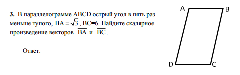 ответ: скалярное произведение векторов ВА и ВС =9