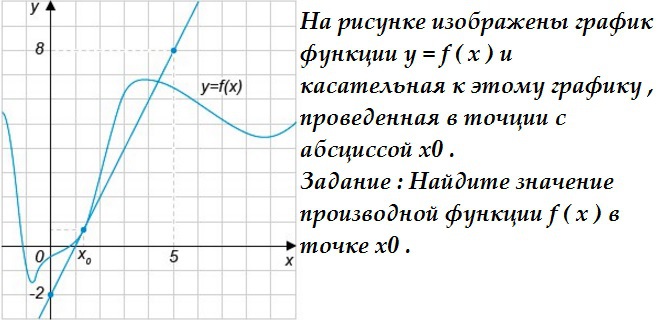 Значение производной в точке - это тангенс угла наклона касательной к графику функции в этой точке. Рассмотреть прямоугольный треугольник с катетами 4 и 8. Тангенс угла = 8 : 4 = 2. Это и есть значение производной
