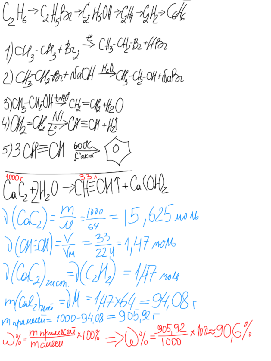 3.Из 1 кг технического карбида кальция в реакции с водой получили 33л ацетилена(н.у.). Вычислите массовую долю примеси в этом образце карбида кальция.