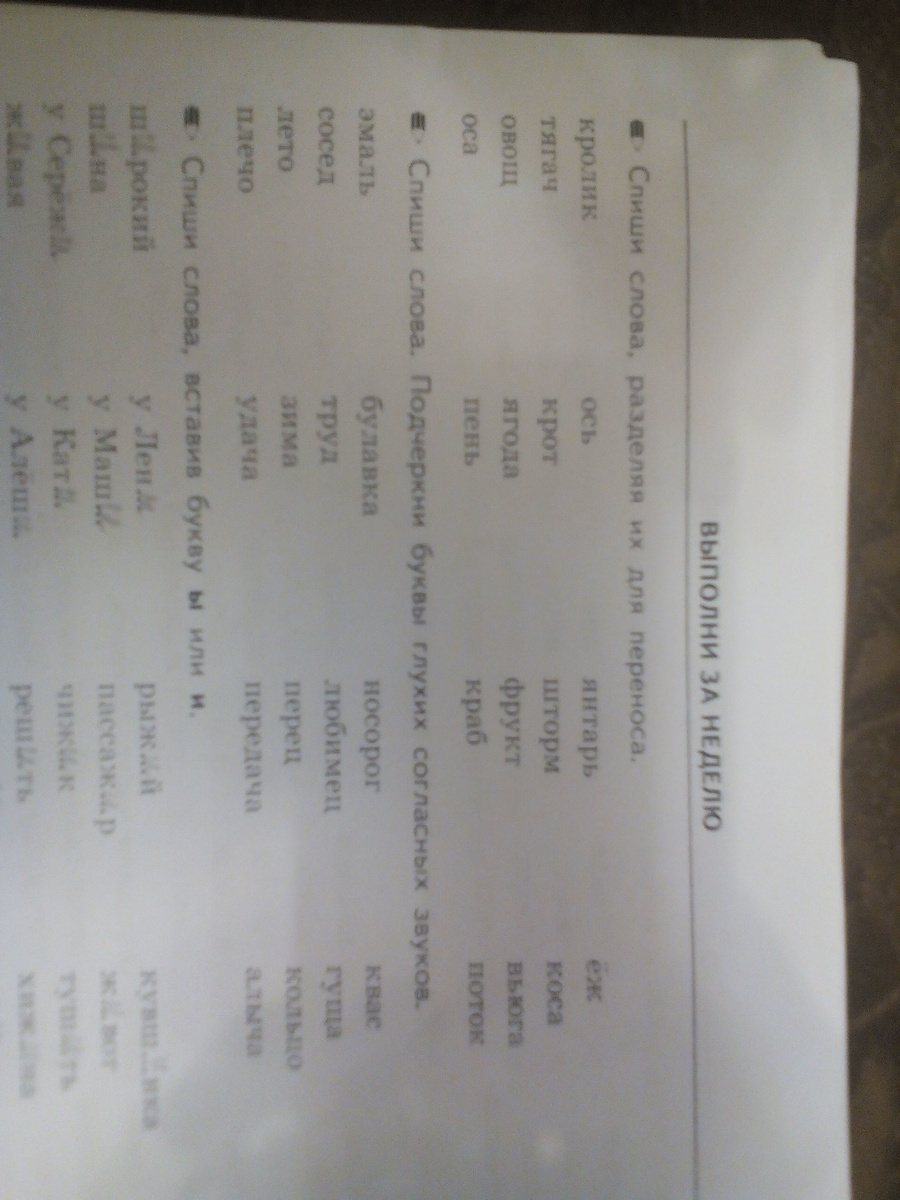 1.кро-лик, тя-гач,овощ,оса,ось,крот,яго-да, пень,ян-тарь,шторм, фрукт, краб.