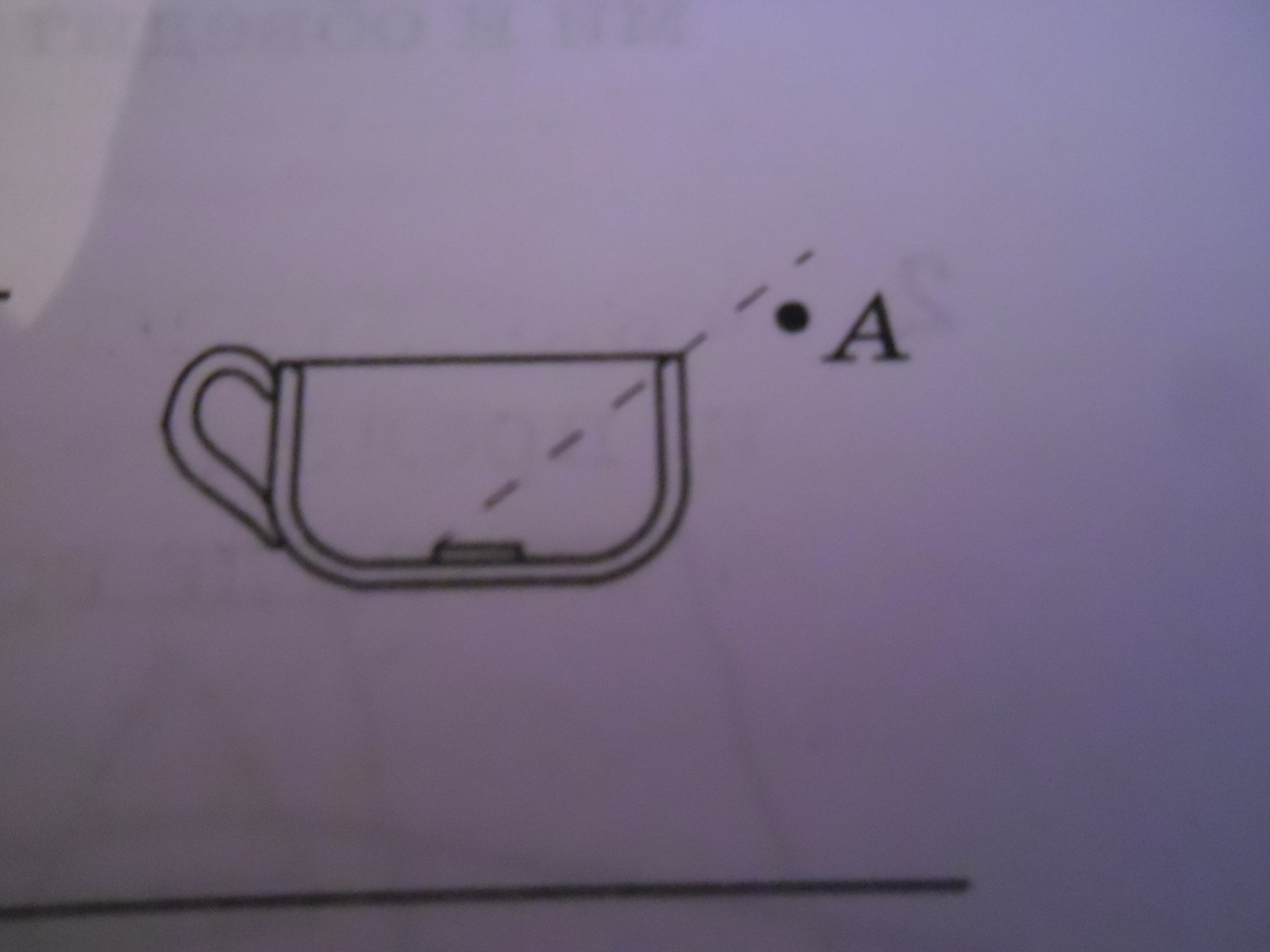 на дне фарфоровой чашки лежит монета, которою не видно из точки А. Станет ли видна монета из точки А, если в чашку налить воду? ответ поясните. Заранее спасибо!!!