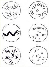 Тело бактерий состоит из одной клетки микроскопических размеров. Но в отличие от других организмов, в клетке бактерий нет ядра. Формы бактерий — самые разнообразные (рис. 134).