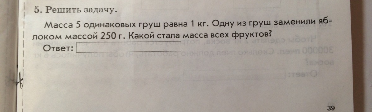 2)5000-1000(1 груша)=4000(кг стало когда забрали 1)
