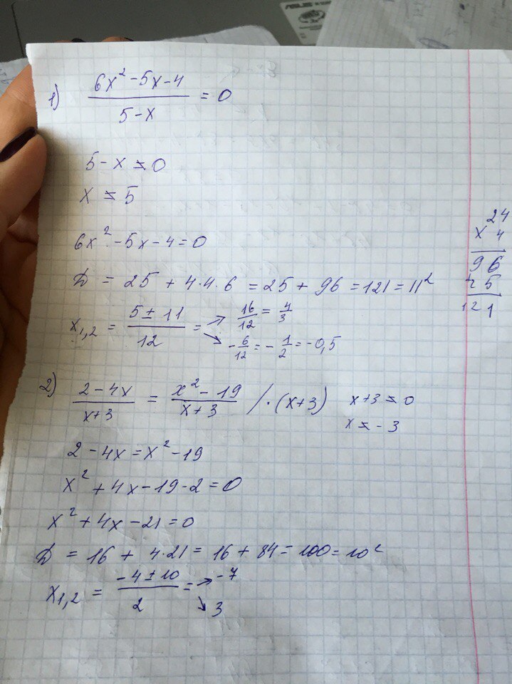 1) Найдите корни уравнения 6x^2-5x-4/5-x=0 ( там где / - дробь )
