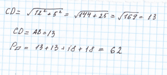 По пифагору находим длину cd а дальше сумма длин всех сторон