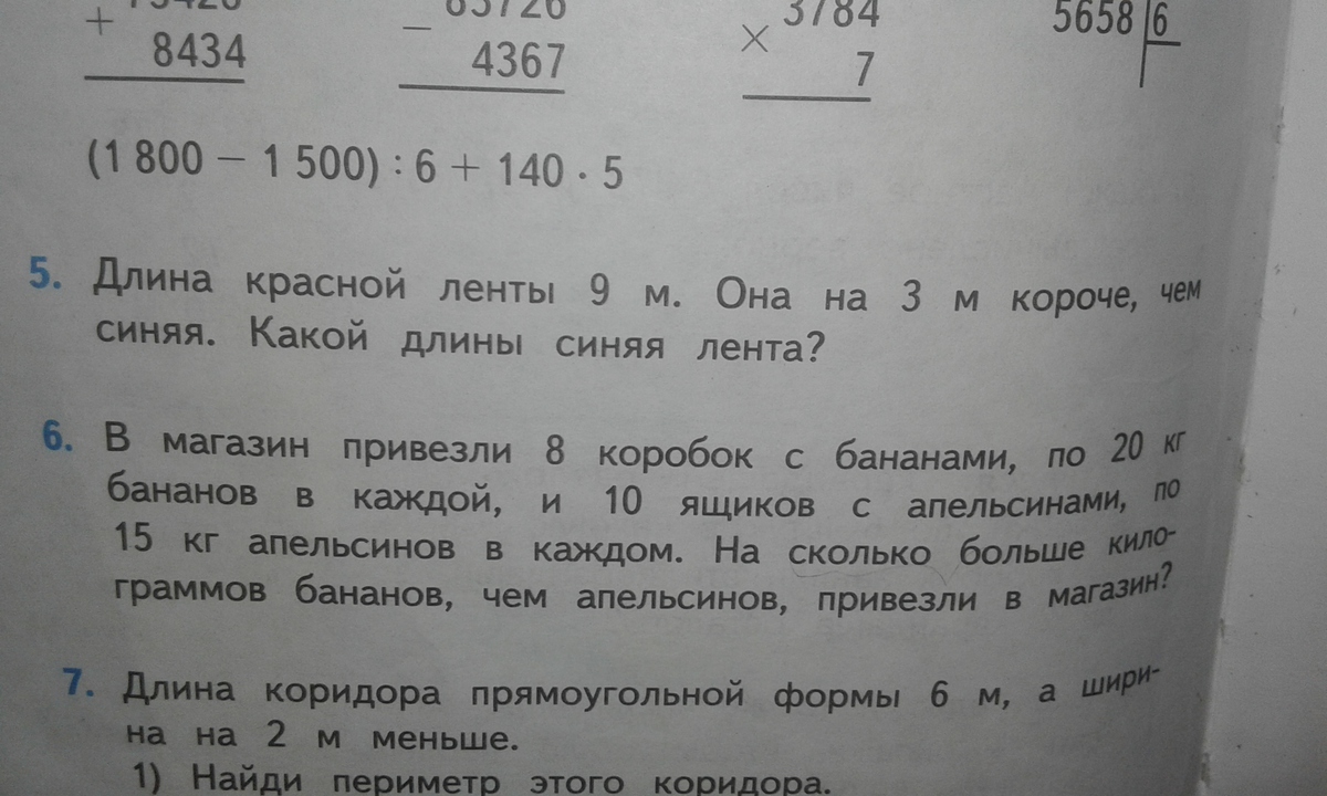 Номер 5. 9+3=12(м.) Ответ:длина синий ленточки равна 12 м
