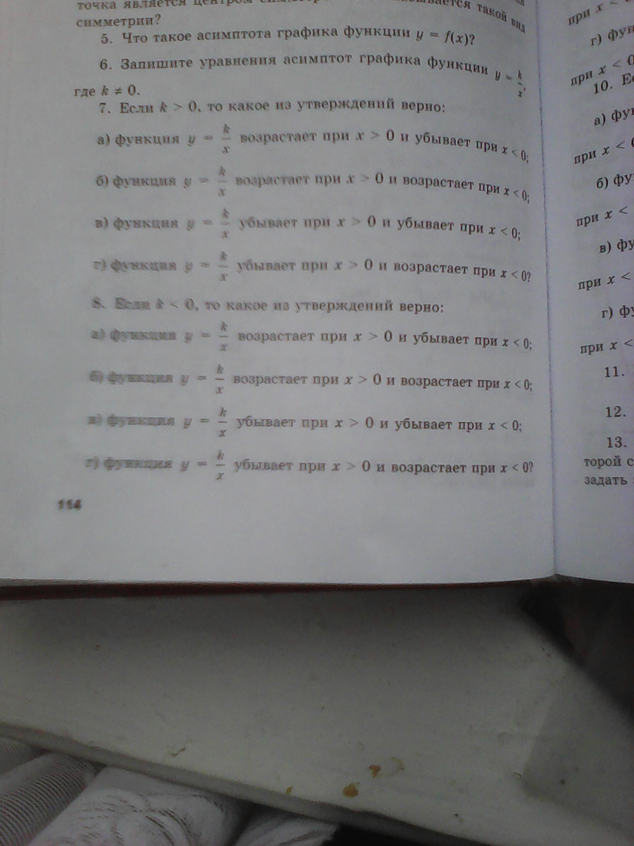 По свойству гиперболы, если k>0 то она убывает на всей области определения, следовательно верными являются высказывания а и в