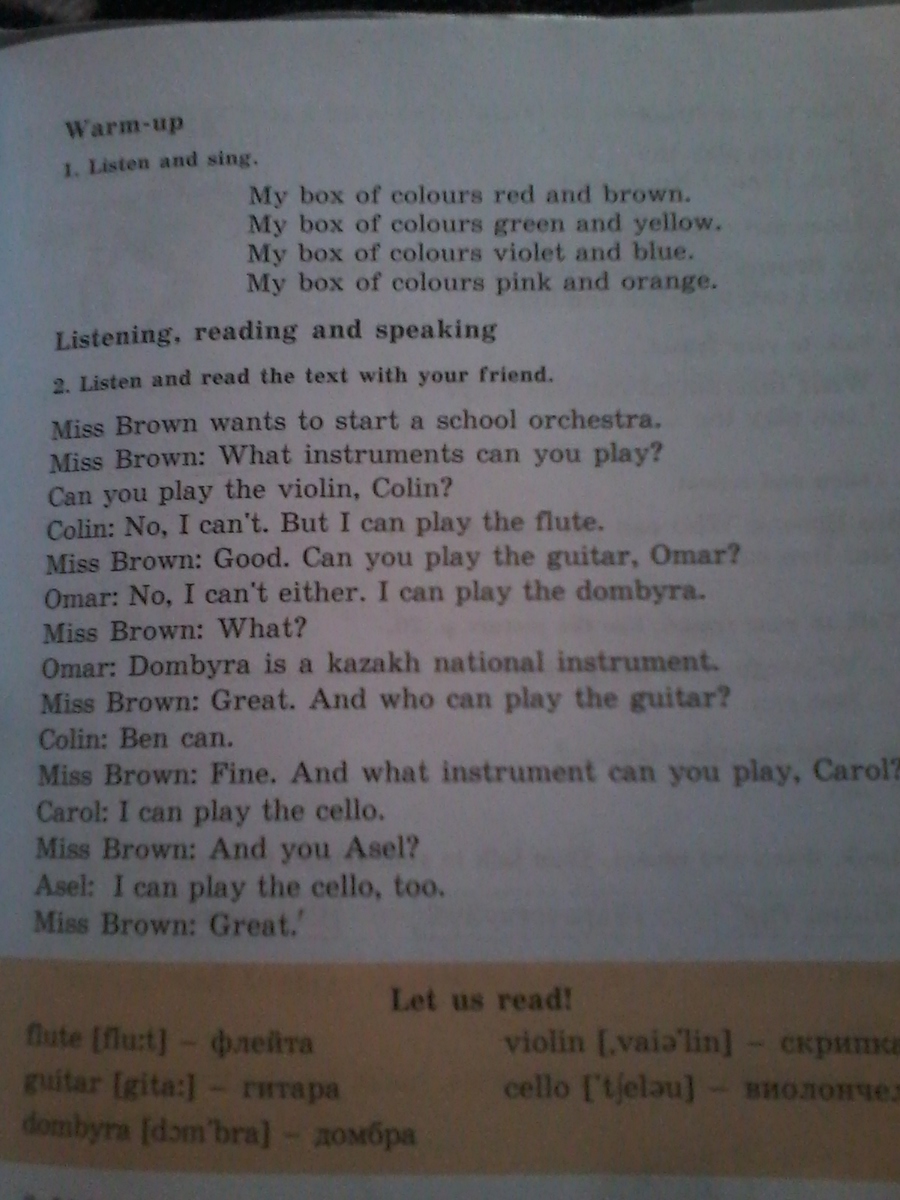 Мисс Браун: Хорошо. И на каком инструменте умеешь играть ты, Кэрол?